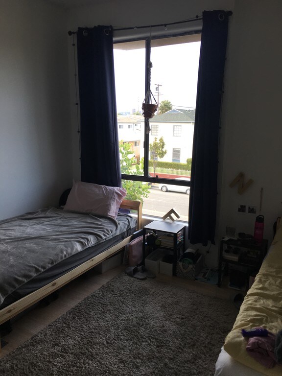 Deposit is $2,000. 30 foot L- shaped balcony. Kitchen granite countertops, dishwasher, microwave, refrigerator. Bedrooms have ample size mirror closets. Lots of storage in the hallway and bedrooms. Laminate wood flooring and tile in the kitchen. 2 gated parking spots. Pet Friendly with no pet deposit or monthly pet charges. The beautiful Virginia Park is across the street. Walking distance to Santa Monica College.