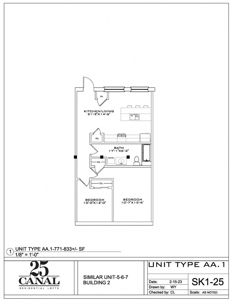 1 Bedroom to 3 Bedroom Apartments at 25 Canal currently range from $1,725 to $2,420