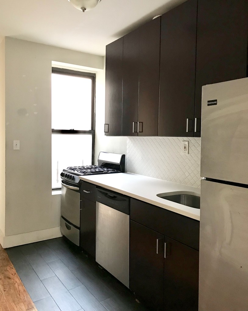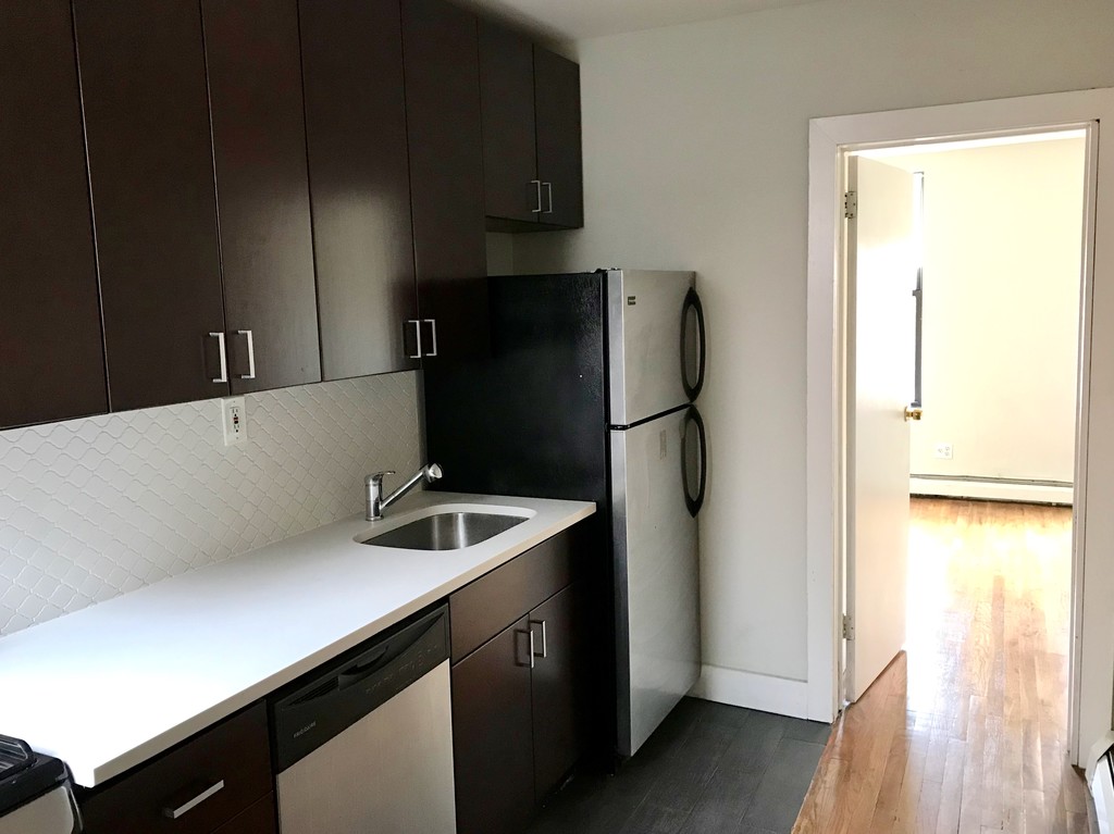 NO FEE. RENOVATED 2 BEDROOM APT ON A QUIET TREE LINED STREET Free Gym Gift Card with move in:) WHAT WE LIKE: - Renovated open kitchen with stainless steel appliances including a dishwasher - Large living room - Split plan bedroom layout - Steps to J & Z trains at Chauncey stop or C train at Rockaway Ave - Windows throughout the unit - Few blocks to Thomas Boyland Park and Hopkinson Playground WHAT TO KNOW: - Guarantors accepted - Central location near restaurants and shopping - Cats are welcome! THE GOODS: - Hardwood floors - Renovated bathroom - Ample closet space in the apt P.S. THIS IS A KEYO TRUE LISTING. OUR TEAM HAS VERIFIED ALL INFO is 100% ACCURATE.