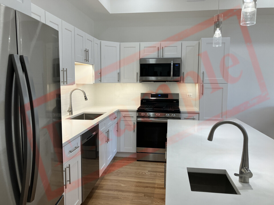 The property is located in the heart of the North Center neighborhood at the intersection of Lincoln Ave., Damen Ave., and Irving Park Rd. The CTA ‘L’ (Brown Line) is a few blocks away from the building, and there is an endless list of restaurants, bars, and retail shops within walking distance. The building is quiet and very well-maintained. The apartment was recently gutted and completely renovated. It features a private entrance, very high ceilings, brand new flooring, a hallway closet at the entrance, a large main bedroom with a walk-in closet, a second closet, and its own bathroom with a walk-in shower and large vanity. The apartment also has high-end lighting throughout, brand new systems, lots of windows (for natural light and fresh air), a second bedroom, in-unit laundry, a massive kitchen with an island that includes a second sink and quartz countertops, and stainless steel appliances. There is room for a dining table, a sizable living room, a small area inside the building’s turret (perfect for a workstation or reading nook), and a large roof deck dedicated to this apartment.