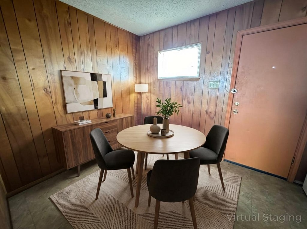 View 360 virtual tour: Our pet-friendly community offers onsite parking. Each one-bedroom home features a covered balcony or stoop, central AC and heat, double closets, privacy blinds, and built-in bathroom storage. The kitchen includes traditional white appliances, wood cabinets, a dining area, and laminate flooring. This second-floor unit offers updated appliances, tiled bathrooms, and a dry bar separating the dining area from a spacious living room. Water and trash are included in the rent, adding extra value and convenience. Appointments aren’t required to tour. Contact us or stop by our Killeen office to learn more and see this apartment in person! We are located at 1020 W Jasper Dr, Killeen, TX 75642. Disclaimer: The furnishings or enhancements shown are AI-generated and intended for inspiration only. They may not reflect the actual scale, condition, or current features of the property.