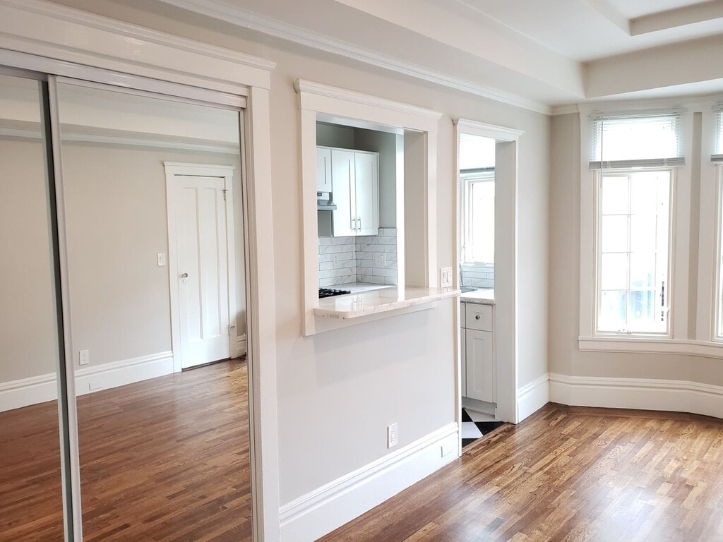 This sunny studio with high ceilings and hardwood floors won't disappoint! Bay windows give great light and a wonderful open feeling. Fully renovated modern kitchen with stainless steel appliances and quartz countertops. A huge walk-in closet provides ample storage space. Beautiful clawfoot bathtub! 890 Bush Apartments is a stately old world San Francisco building centrally located on the corner of Bush and Taylor Streets, in the coveted Nob Hill neighborhood. From the secure private entrance, grand lobby design and well appointed units this is a fantastic building that is central to all things San Francisco. Building amenities include onsite manager, coin/card-op laundry, and elevator. Secure bike room available. There is no parking onsite but with a Walk Score of 99, Transit Score of 100 and a Bike Score of 62 (it is Nob Hill...) this is a pedestrian's paradise. A multitude of restaurants, grocery stores and entertainment options abound nearby. Well-behaved cats and dogs are welcome with additional pet deposit and monthly pet rent. Dogs require $500 pet deposit + $50/month pet rent, cats require $300 pet deposit + $25/month pet rent. Breed restrictions may apply, per owner's discretion. Utilities include: Water, Trash, Sewer, Steam Heat. Tenant responsible for their own metered gas/electric (PG&E). 1 year lease required. This unit is a rental unit subject to the San Francisco Rent Ordinance, which limits evictions without just cause, and which states that any waiver by a tenant of their rights under the Rent Ordinance is void as contrary to public policy.