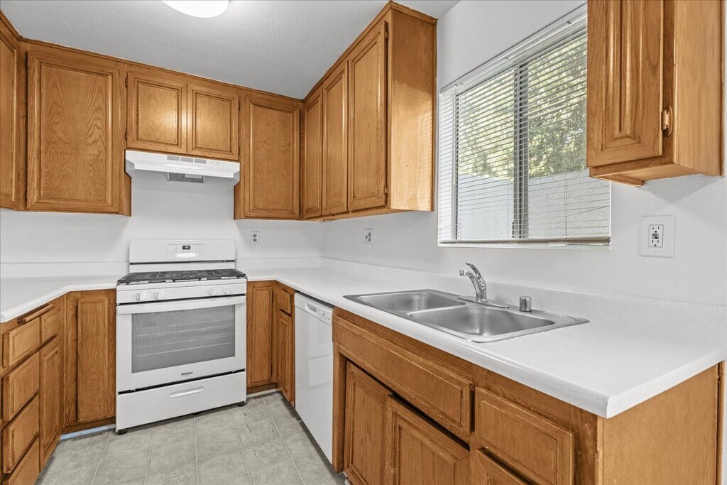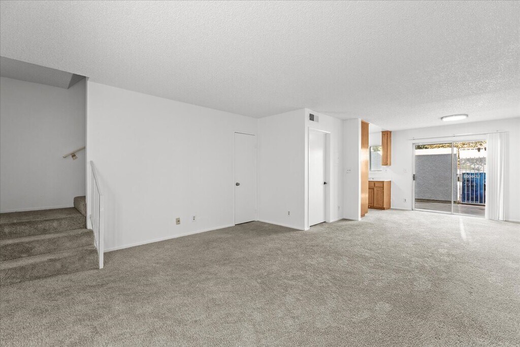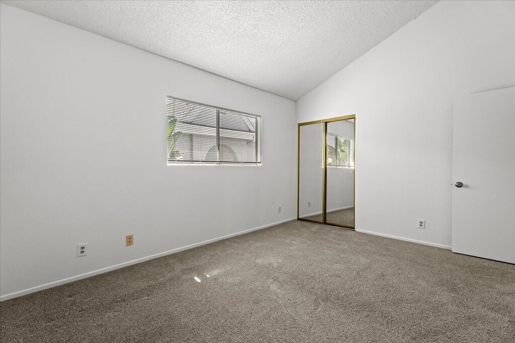This spacious & bright 2 bedroom 1.5 bath apartment features a living room and dining room upon entry. A convenient half bath is located off the living room, as well as a full kitchen with a gas stove and dishwasher. A large sliding door leads directly onto your private patio for outdoor entertaining. Upstairs you will find both bedrooms, featuring vaulted ceilings, and large closets, as well as a full size bathroom. Photos are of a similar unit.