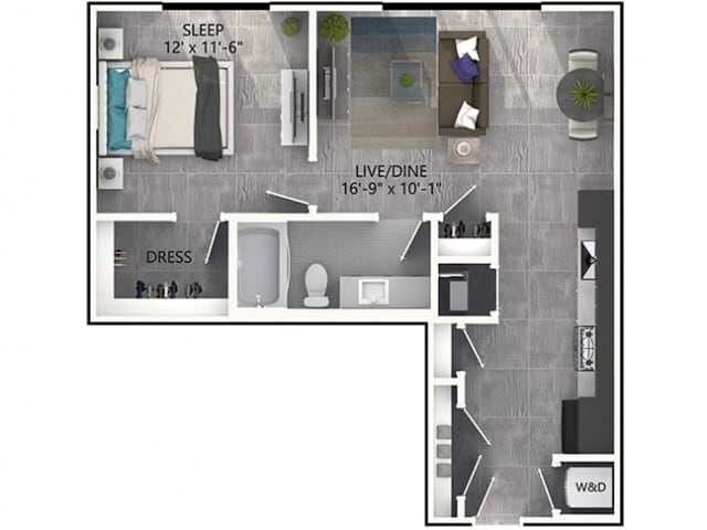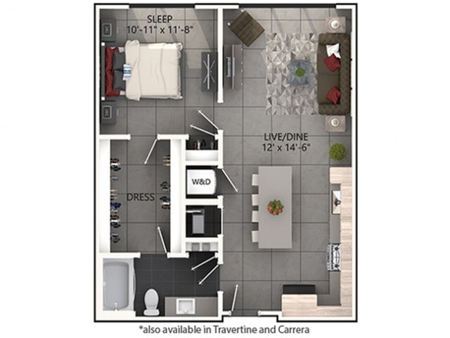 Studio, 1 Bath, 536 sq ftModel Gallery