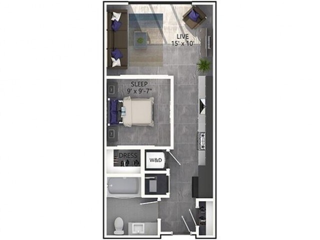 Apartment Model: E1From $2,799Studio, 1 Bath, 536 sq ftAvailable December 11, 2025E1 - Floorplan 1 Apartment Unit: South-664Apartment Model: E1From $2,799Studio, 1 Bath, 536 sq ftAvailable December 11, 2025Floorplan E1P