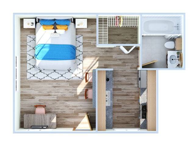 Azalea - Floorplan 1 Apartment Unit: 02-216Apartment Model: AzaleaFrom $1,704Studio, 1 Bath, 377 sq ftAvailable Now1 Bedroom