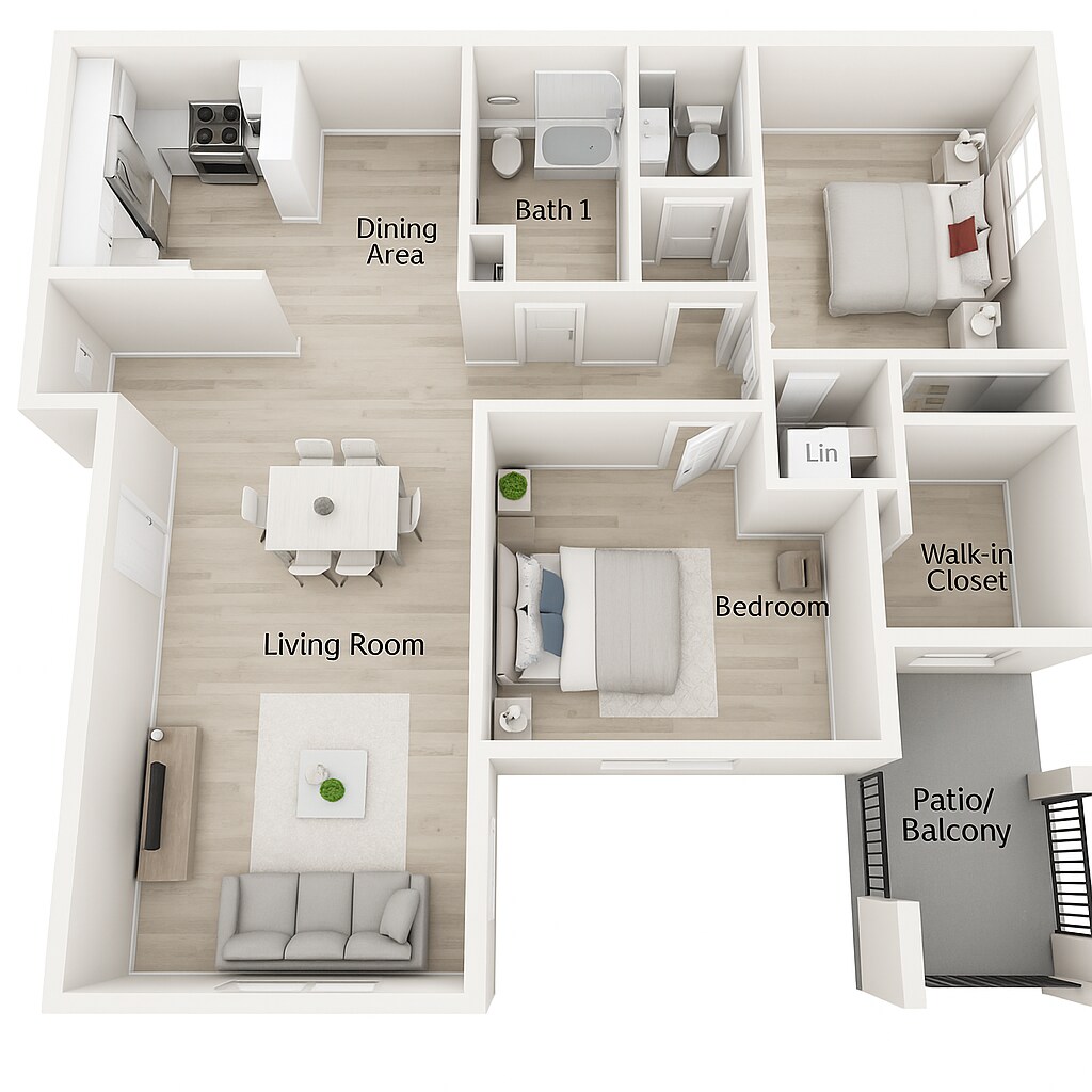 2 Beds, 1 Bath, 830 sq ftModel Gallery