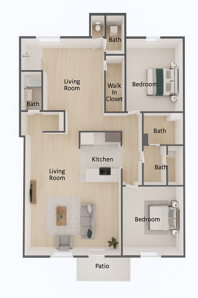 2 Beds, 2.5 Baths, 1121 sq ftAvailable Jun 6Largest 2 BedroomThis is the largest 2 Bedroom at this PropertyModel Gallery