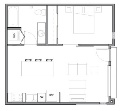 1 Bed, 1 Bath, 544 sq ftModel Gallery