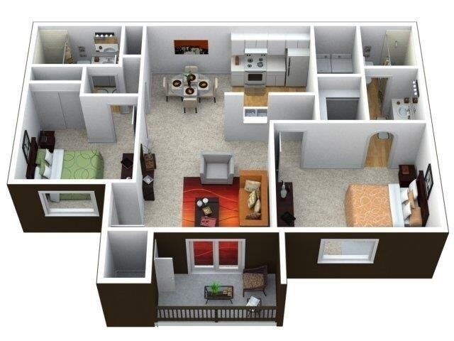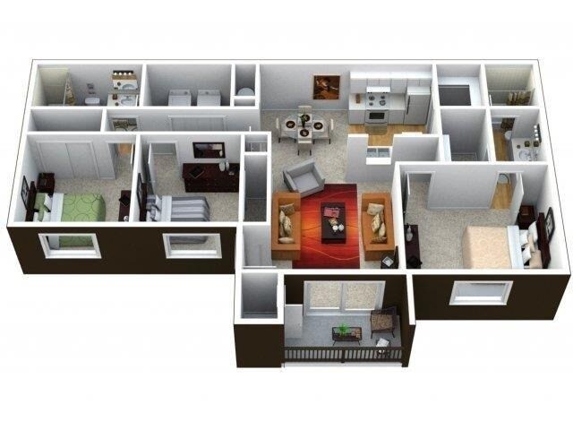 Apartment Model: 3 Bedroom 2 BathCall For Rates3 Bedroom, 2 Bath, sq ftUnavailable3 Bedroom 2 Bath - Floorplan 1