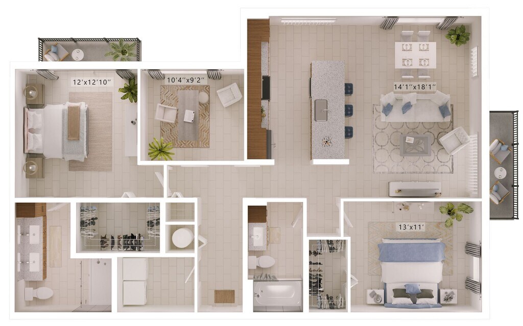 Madison - Floorplan 1 Apartment Unit: 211Apartment Model: Madison$2,9601 Bedroom, 1 Bath, 918 sq ftAvailable February 25, 20262 Bedrooms