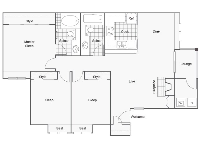 3 Beds, 2 Baths, 1189 sq ftPlus FeesAvailable NowModel Gallery