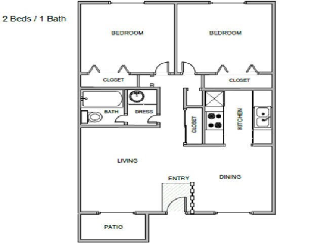 Apartment Model: 2 Bedroom 1 Bath2 Bedroom, 1 Bath, 912 sq ftUnavailable2 Bedroom 1 Bath - Floorplan 1 2 Bedroom 2 Bath