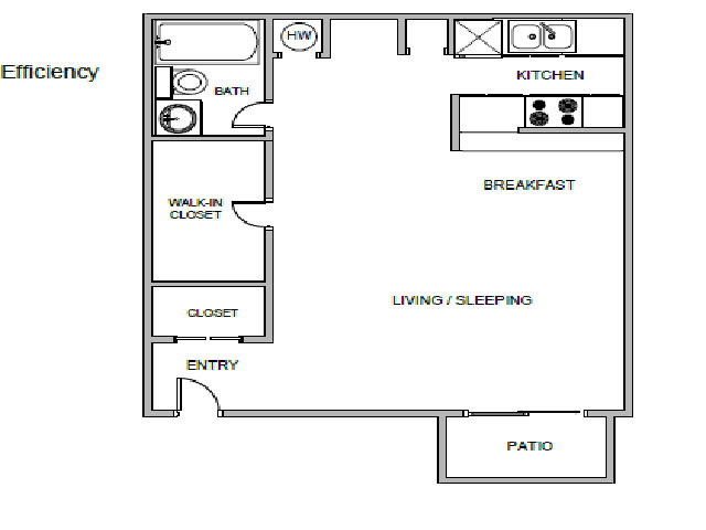 Apartment Model: EfficiencyStudio, 1 Bath, 498 sq ftUnavailableEfficiency - Floorplan 1 1 Bedroom