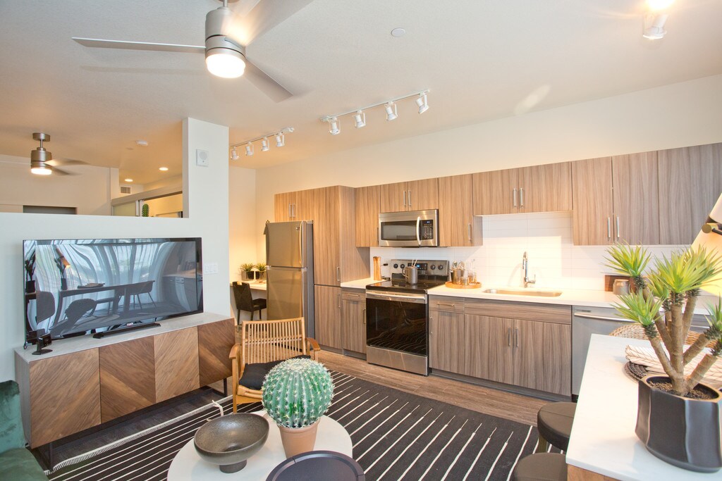 An exciting new chapter begins as soon as you take your pick from our studio, one, and two-bedroom apartments. Lifes essential amenities and extra comforts are included from the get-go, providing a canvas you are free to personalize as you see fit. Some of these highlights include keyless entry, designer plank flooring, private patios/balconies, as well as upgraded kitchens and in-unit washers and dryers. You will be just as captivated by the fabulous rooftop deck with Phoenix skyline views, firepits and our refreshing pool. Other amenities include our dog park, EV charging stations, the state-of-the-art fitness center with Fitness on Demand, and the modern resident clubhouse/ business center.