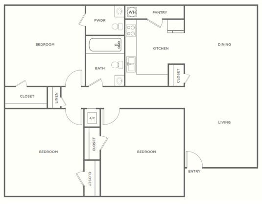 Apartment Model: 3x1.53 Bedroom, 1.5 Bath, 900-930 sq ftUnavailable![]()