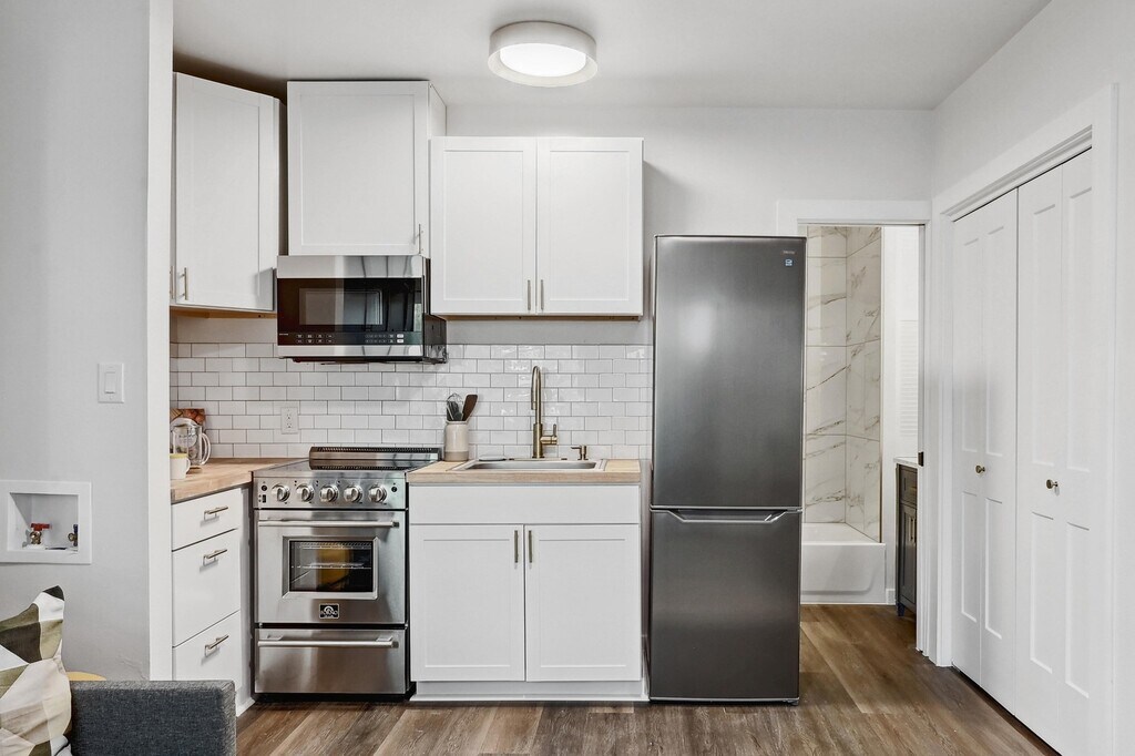 Welcome to your newly remodeled, fully furnished apartment—just a 6 minute walk from UT Austin! This upgraded studio was designed with student living in mind: stylish, functional, and packed with features to make life easier. Microwave and fridge from 2025 too! Step inside and you’ll immediately notice the modern finishes, from the sleek wood-look floors to the large double-paned windows that fill the space with natural light. The open kitchen is perfect whether you’re meal-prepping, reheating ramen, or hosting friends—it includes clean white shaker cabinets and durable butcher block countertops. The bathroom feels fresh and spa-like with new tile, a brand-new tub, toilet, and vanity. Laundry is a breeze with your own in-unit washer and dryer (a total game-changer). To maximize space, the apartment includes a Murphy Bed–Sofa setup (full or queen) so your home can easily switch from study mode to chill mode. Move-in ready and fully furnished, this place gives you everything you need for comfort, convenience, and great campus living. Don’t miss out—modern design meets student-friendly practicality right here!