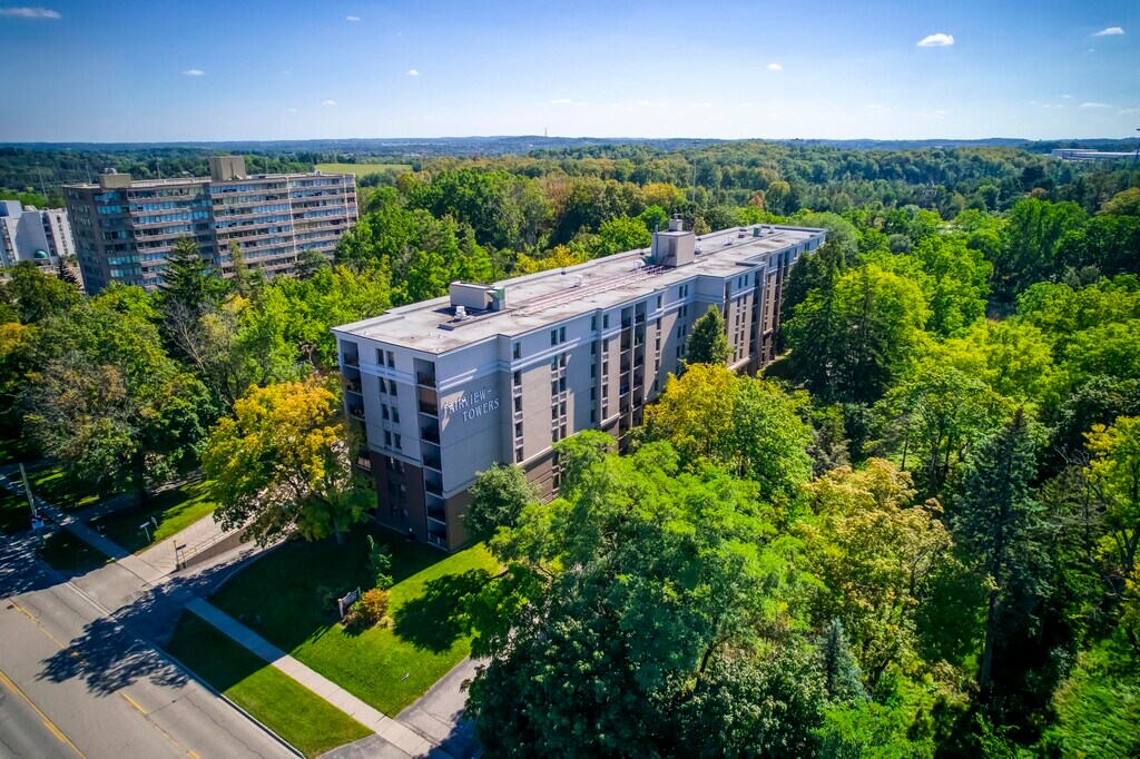 Fairview Towers epitomizes community, proudly owned and managed by MillDon Living. The spacious lobby with ample seating and a spiral staircase welcomes residents and visitors to this gem of a building. Nestled in a park-like setting and steps away from convenient amenities such as shopping, groceries and major hubs in Kitchener, the location can't be beat. Recent enhancements to the building include glass balconies - the perfect spot to enjoy a sunrise or sunset- and suite upgrades include stainless steel appliance and granite countertops. The back lawn offers green space with picnic tables, umbrellas and a barbecue- perfect for connecting with family and neighbours. The building staff take great pride in the property's flower gardens, another example of the MillDon Living difference. The social room is modern, offering a billiards table, a ping pong table, WiFi and cable TV. It’s a perfect space for entertaining, parties or special events (and it’s decorated seasonally at Christmas for people who want to host family and friends). What’s Unique: the community – seasonal festivities are a regular occurrence (Christmas, Halloween trick or treating), people organize craft and bake sales to raise money for charity and the seniors population has an organized gathering in the social room twice a month. “There is such a sense of community and kindness among the residents here. We have one resident who always cooks more than is required, so she can take dinner to other residents. Everyone really knows each other and looks out for each other.” Visit Fairview Towers at 3189 King St. E in Kitchener today and fine your new place to call home!
