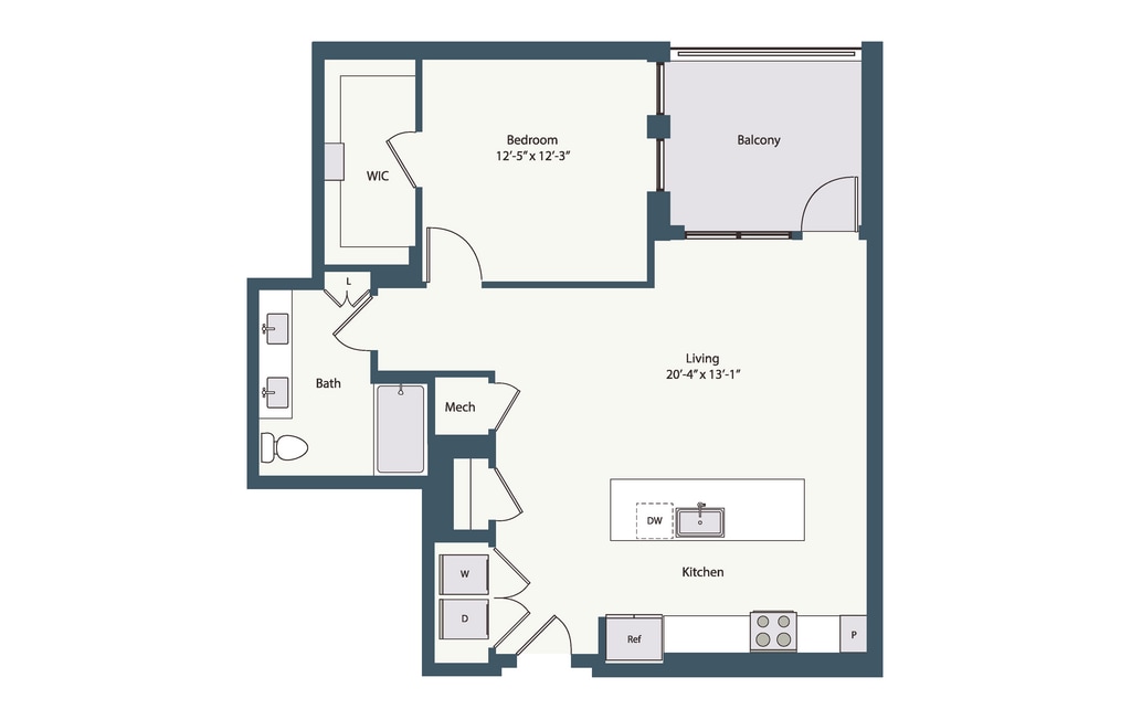 1A - Floorplan 1 Apartment Unit: 2124Apartment Model: 1A$3,9901 Bedroom, 1 Bath, 845 sq ftAvailable March 7, 20261B.1
