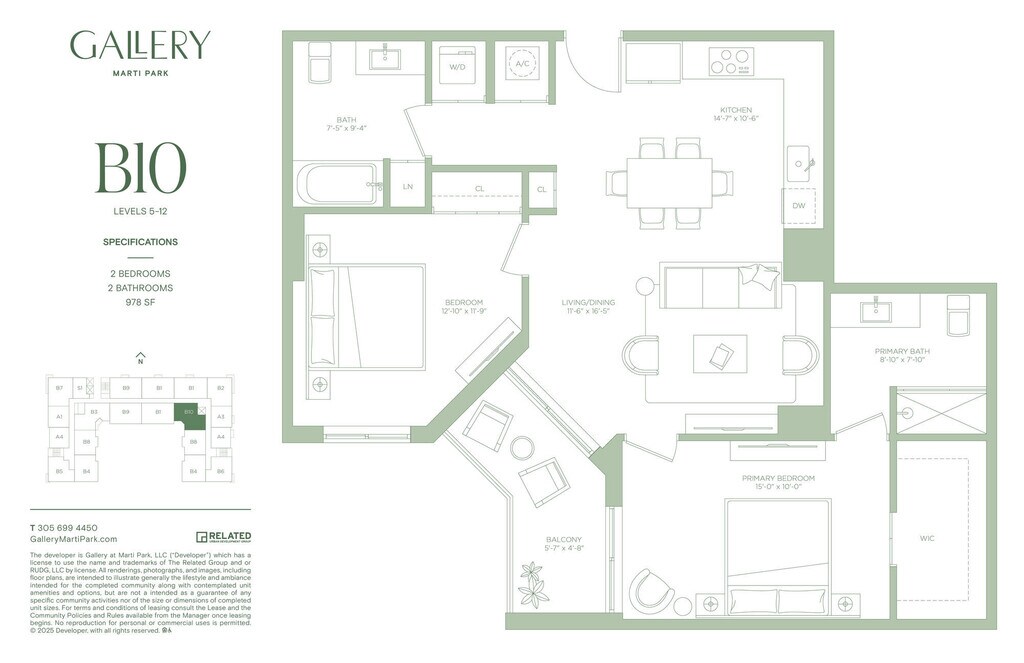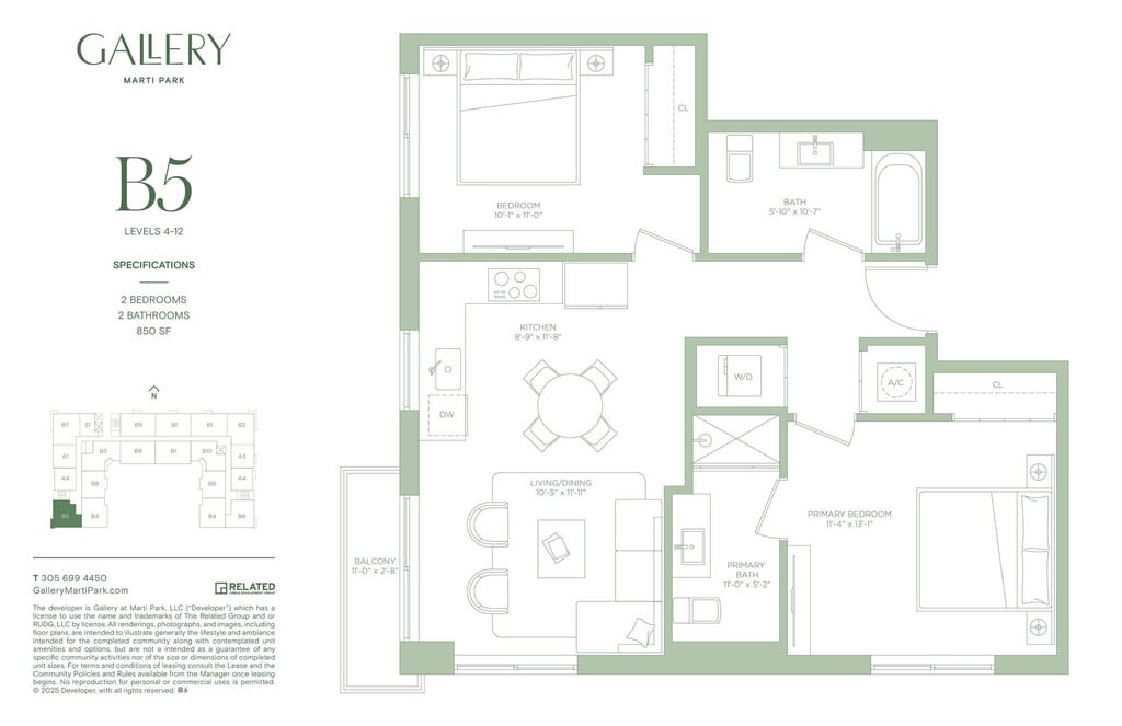 Gallery Marti Park offers 2 Bedroom apartments starting from $2,114 and having 850–1,064 sq ft. Here is the current pricing and availability: