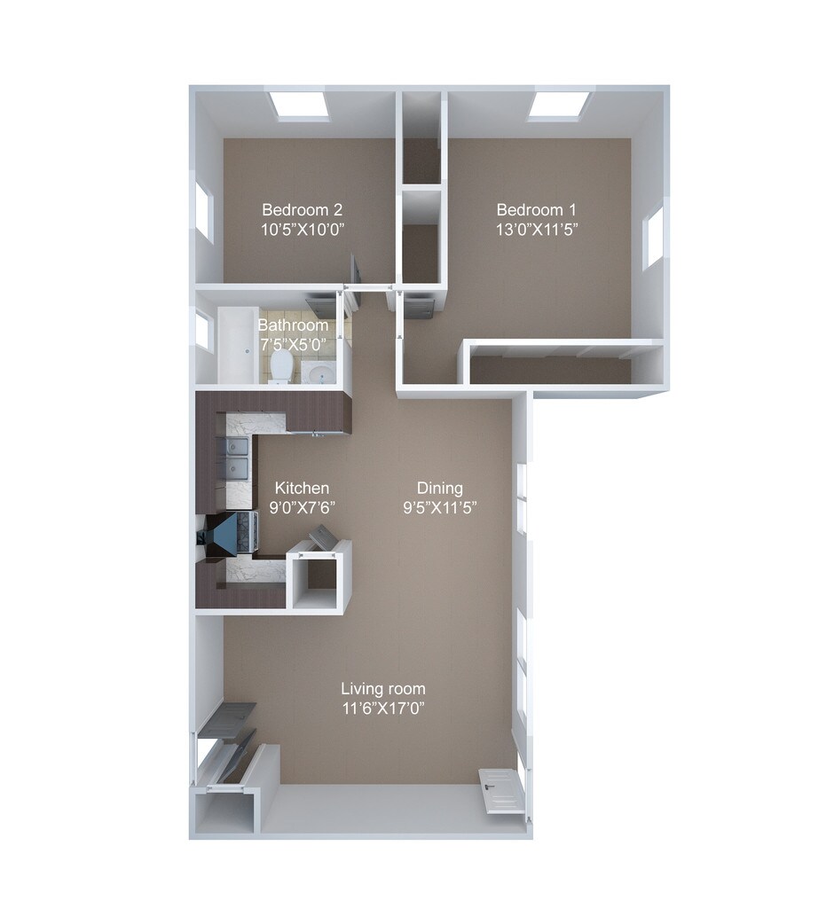 2 Beds, 1 Bath, 850 sq ftLargest 2 BedroomThis is the largest 2 Bedroom at this PropertyModel Gallery