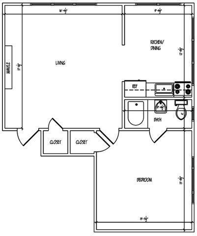 Heights One Bedroom - Floorplan 1 1 Bed, 1 bath