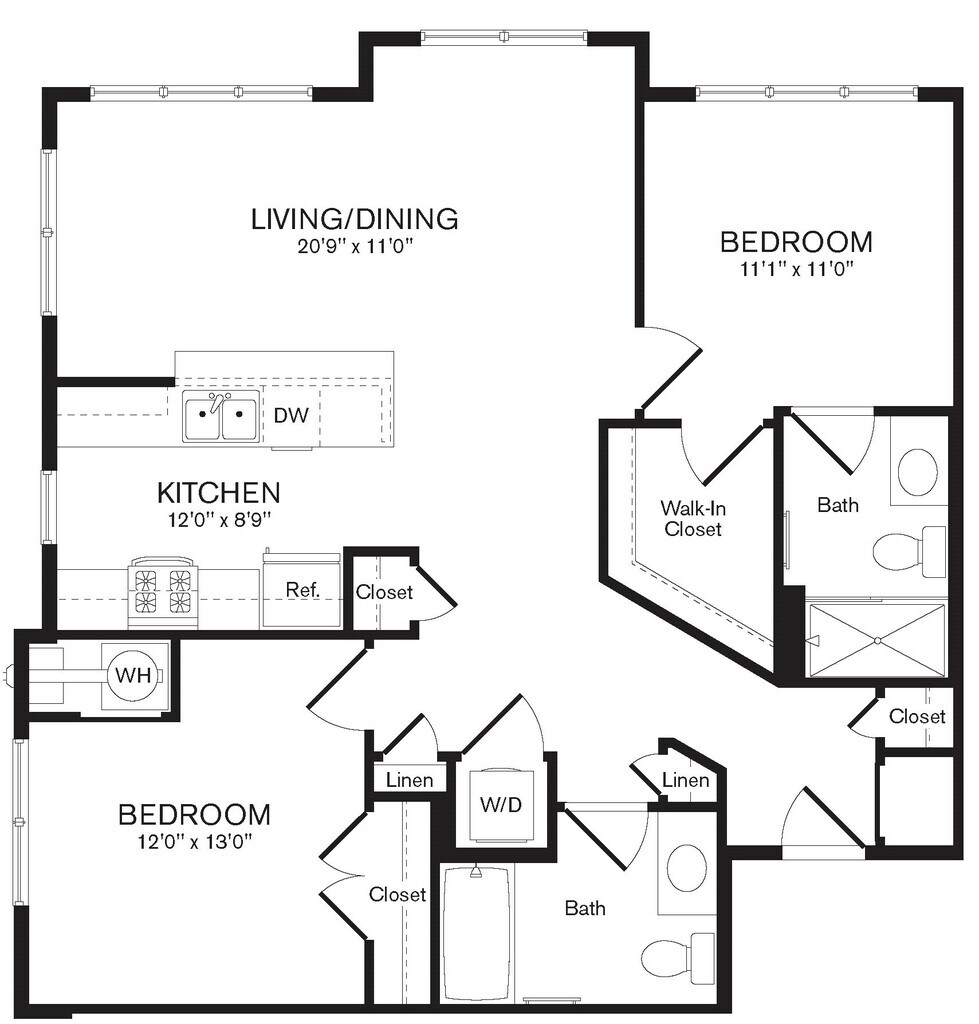1 Bed, 1 Bath, 753 sq ftAvailable NowModel Gallery
