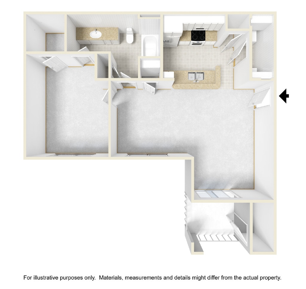 1 Bed, 1 Bath - Floorplan 3 2 Bedrooms
