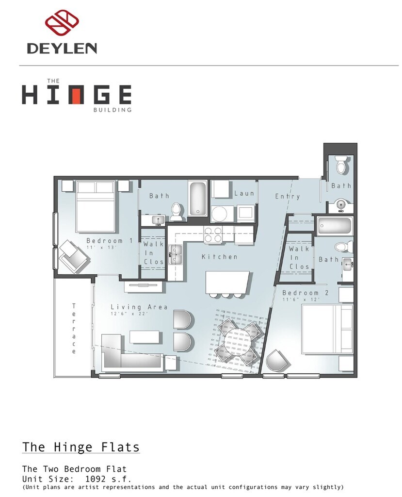 Hinge Apartments offers 1 to 2 Bedroom apartments starting from $1,640 and having 828–1,092 sq ft. Here is the current pricing and availability: