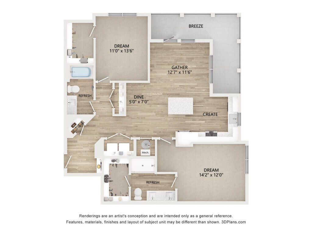 D1.1V - Floorplan 1 Apartment Unit: 301Apartment Model: D1.1V$2,0022 Bedroom, 2 Bath, 1259 sq ftAvailable NowD1.1