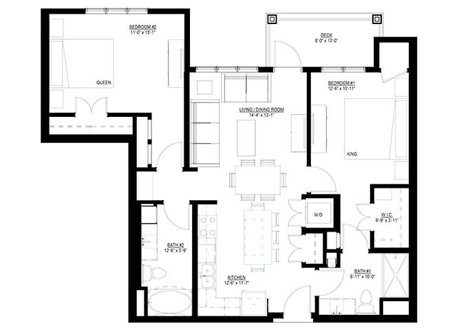 Two Bedroom B - Floorplan 1 Apartment Unit: 2-204Apartment Model: Two Bedroom B2 Bedroom, 2 Bath, 1050 sq ftAvailable NowApartment Unit: 2-404Apartment Model: Two Bedroom B2 Bedroom, 2 Bath, 1050 sq ftAvailable March 10, 2026Two Bedroom C