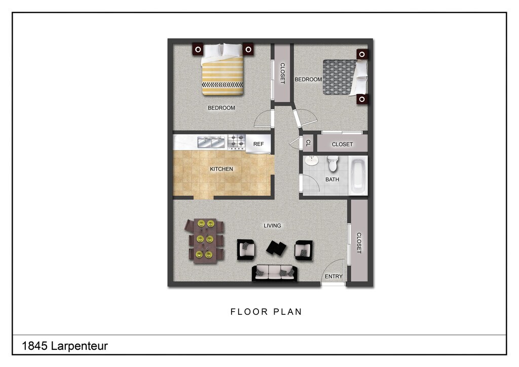 1 Bedroom - Floorplan 1 2 Bedrooms