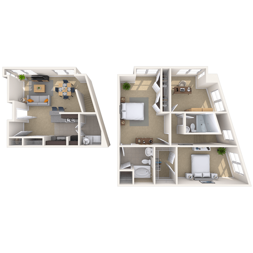 Unit: 375 - Floorplan 1 Dual Level 0x1 632 SF