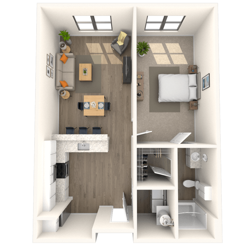 Apartment Model: Studio 0x1 516-643 SFFrom $1,460Studio, 1 Bath, 574 sq ftAvailable Now![]()