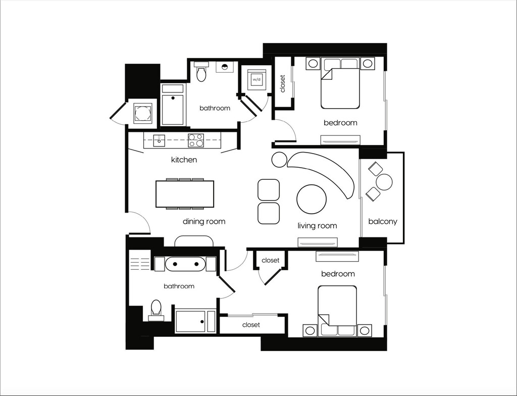 2 Beds, 2 Baths, 1106 sq ftModel Gallery
