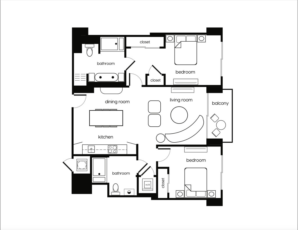 Apartment Model: B1From $3,5772 Bedroom, 2 Bath, 1168 sq ftAvailable NowFloor plans are artist's rendering. All dimensions are approximate. Actual product and specifications may vary in dimension or detail. Not all features are available in every rental home. Prices and availability are subject to change. Base rent is based on monthly frequency. Additional fees may apply, such as but not limited to package delivery, trash, water, amenities, etc. Deposits vary. Please see a representative for details.