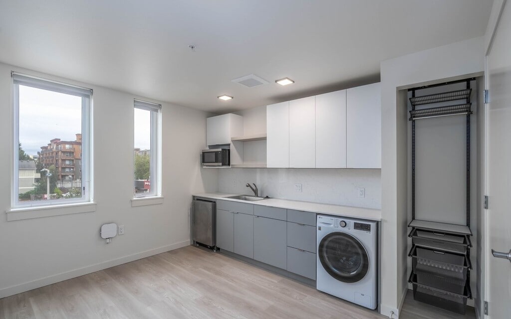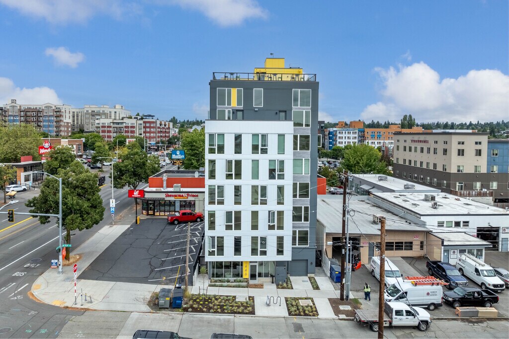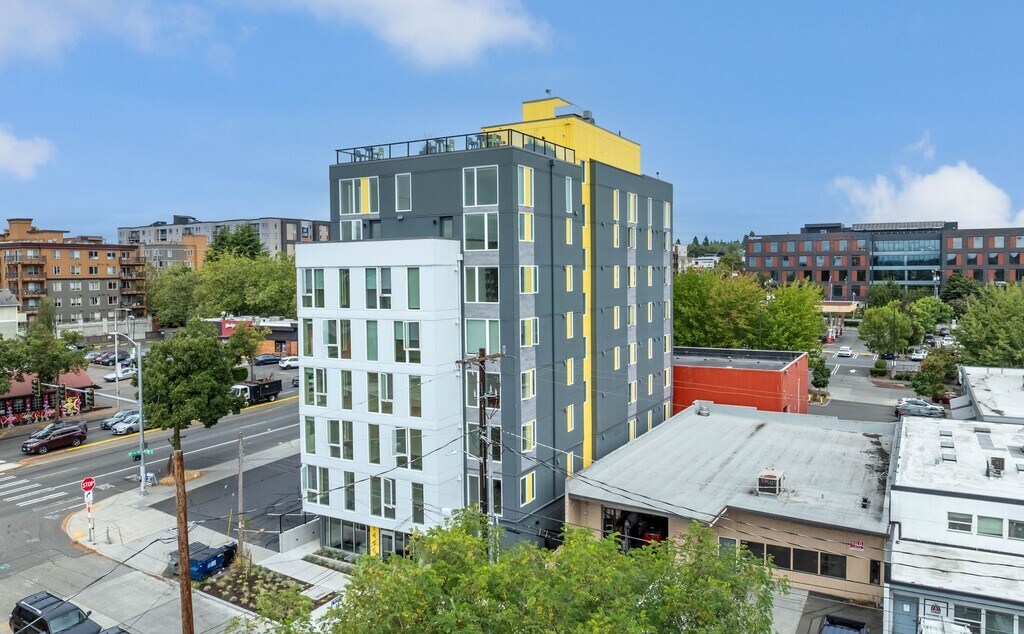 Welcome to Nordic Tower, a brand-new multifamily property at 1446 NW 53rd St, Seattle 98107! Built in 2024 in vibrant Ballard, this modern building offers 56 studio and one-bedroom units. Each home features in-unit laundry, air conditioning, heating, stainless steel appliances, quartz countertops, and some even boast heated bathroom floors, high ceilings, and designer finishes like concrete or luxury vinyl plank floors. Enjoy stunning 360-degree views from the expansive roof terrace and lounge. Work from home in the lobby with a communal co-working table and private office spaces. Other amenities include 24-hour package lockers, bicycle storage, and an elevator. With a "Walker's Paradise" Walk Score of 97 and a "Biker's Paradise" Bike Score of 97, daily errands are easy. Public transportation is steps away, offering quick access to Downtown Seattle and the University of Washington. Experience Ballard's unique blend of "small-town feel with city convenience," surrounded by diverse restaurants, coffee shops, bars, shops, and grocery stores. Plus, you're close to beloved parks like Green Lake. Nordic Tower offers modern Seattle living at its finest, combining stylish residences with unparalleled accessibility and a thriving neighborhood atmosphere.