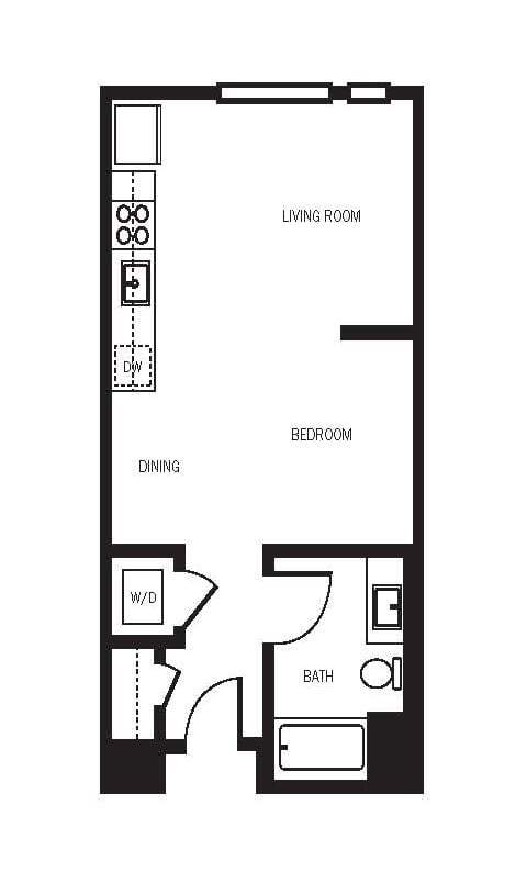 Apartment Model: Studio A1Studio, 1 Bath, 485 sq ftAvailable October 31, 2025Studio A1 - Floorplan 1 Apartment Unit: 429Apartment Model: Studio A1Studio, 1 Bath, 485 sq ftAvailable October 31, 20251 Bedroom