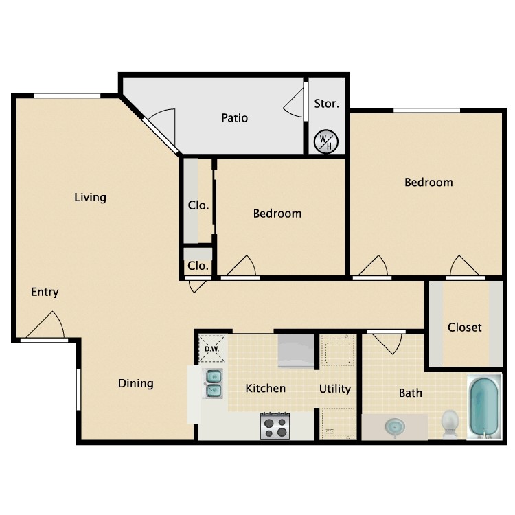 Apartment Model: Plan B22 Bedroom, 2 Bath, 907 sq ftUnavailable![]()