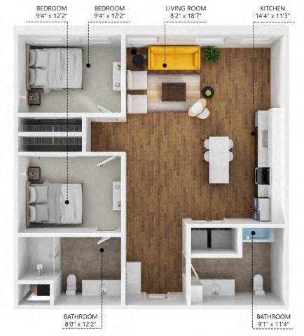 1 Bed, 1 Bath, 723 sq ftAvailable NowModel Gallery