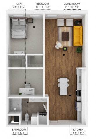 A3 - Floorplan 1 Apartment Unit: 16-218Apartment Model: A3$1,3501 Bedroom, 1 Bath, 723 sq ftAvailable NowApartment Unit: 16-118Apartment Model: A3$1,4501 Bedroom, 1 Bath, 723 sq ftAvailable NowA4 - With Den