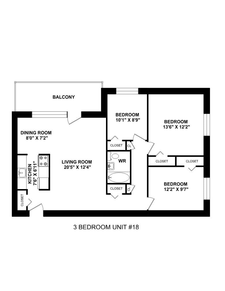 1 Bedroom - Floorplan 10 3 Bedrooms