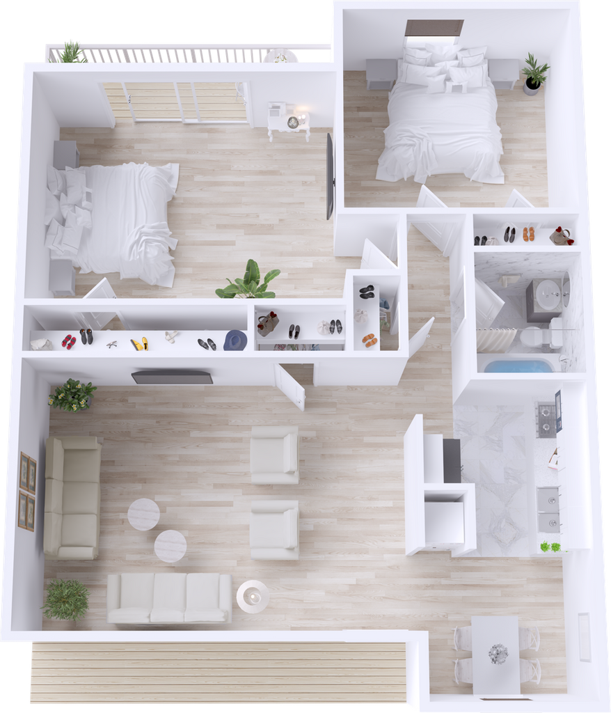 Apartment Model: B1R - Rio VillasFrom $9002 Bedroom, 1 Bath, 732 sq ftAvailable Now![]()