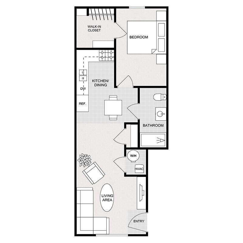 1 Bed, 1 Bath, 628 sq ftModel Gallery