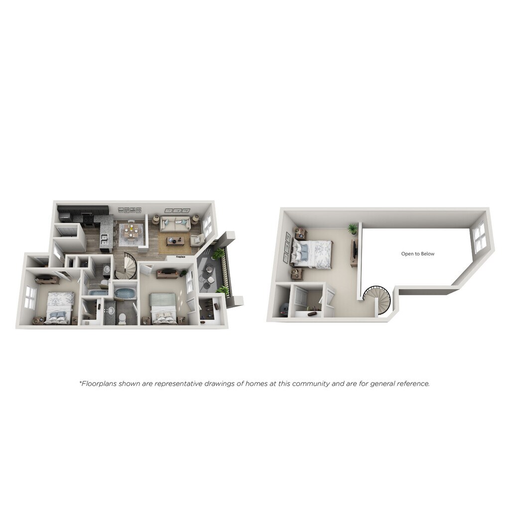1 Bedroom Loft - Floorplan 1 2 Bedrooms