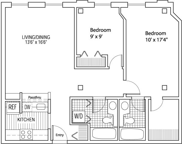 1 Bed 1 Bath - Floorplan 9 ![]()