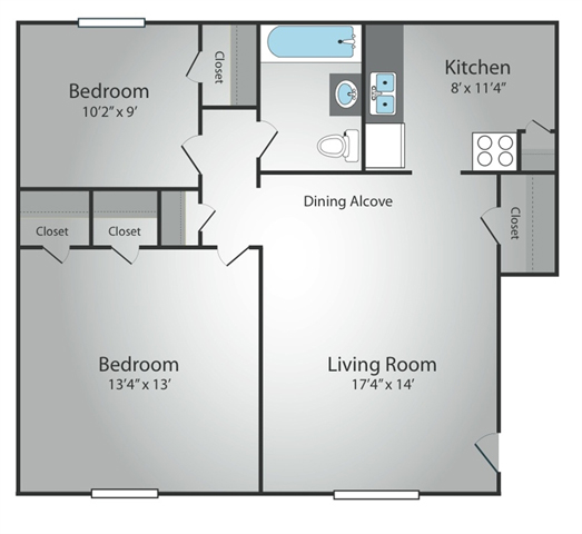 2 Beds, 1 Bath, 743 sq ftAvailable NowModel Gallery