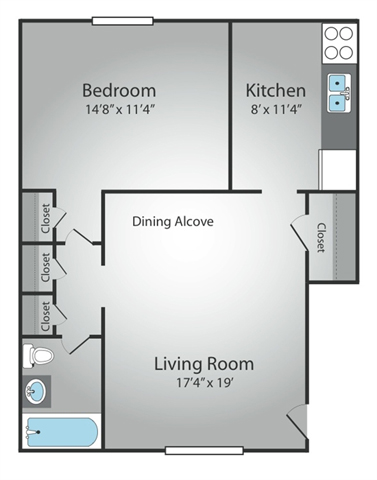 1 Bed, 1 Bath, 491 sq ftAvailable NowModel Gallery