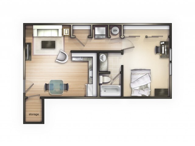 1 Bed, 1 Bath, 413 sq ftAvailable NowModel Gallery