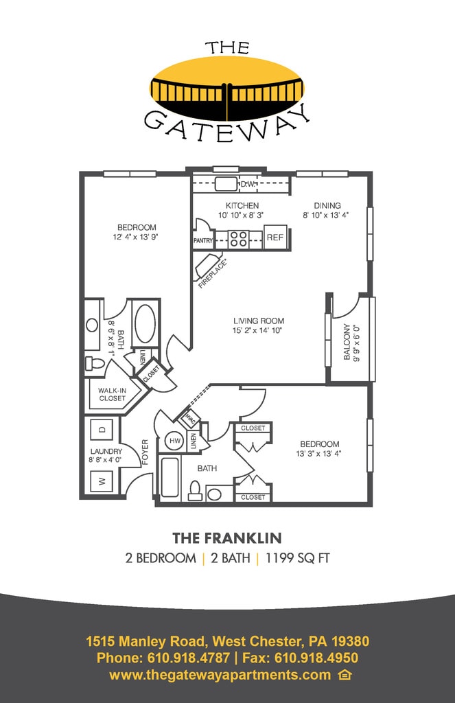 Apartment Model: The FranklinFrom $2,5442 Bedroom, 2 Bath, 1199 sq ftAvailable Now![]()